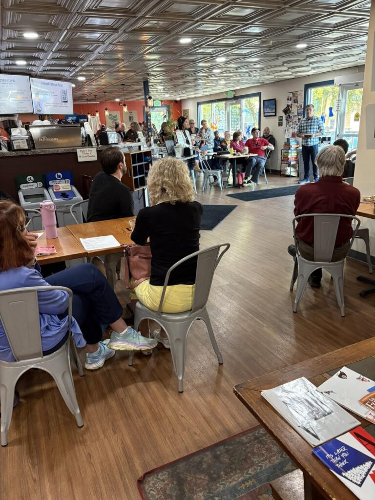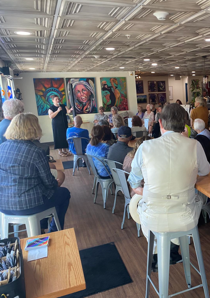 Members inspire members, and we showed up for local board meetings across our various towns and villages. Voice the Constitution started to take off in various libraries and other locations. And we collected food for local food banks.