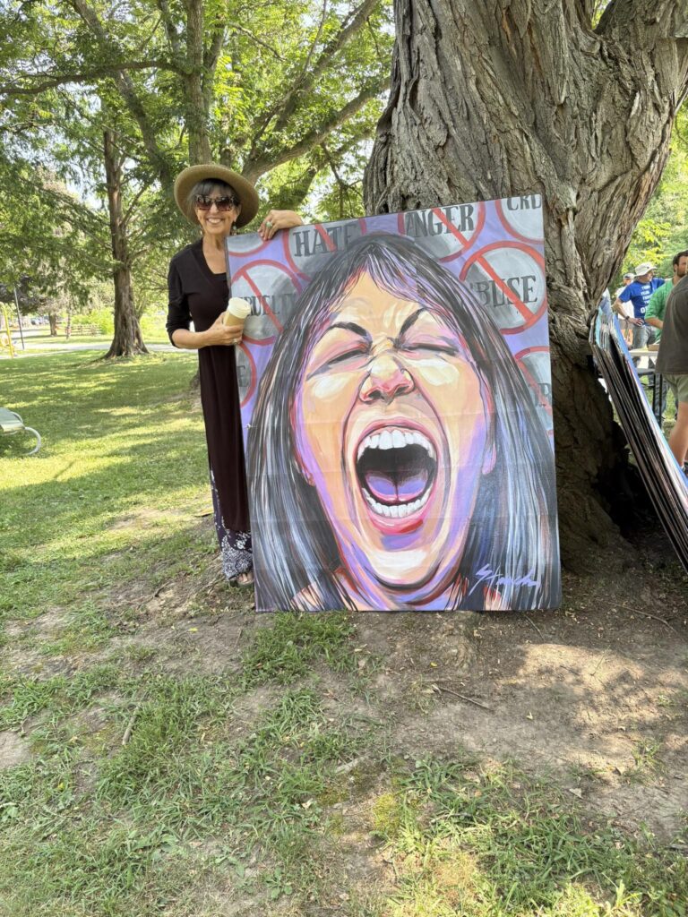 What made that protest memorable were the larger than life-size posters of paintings by local artist Lorriane Staunch.
